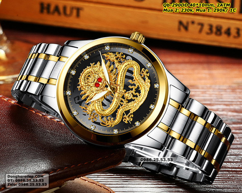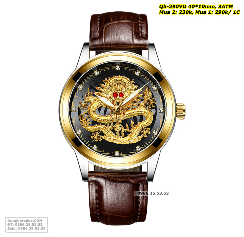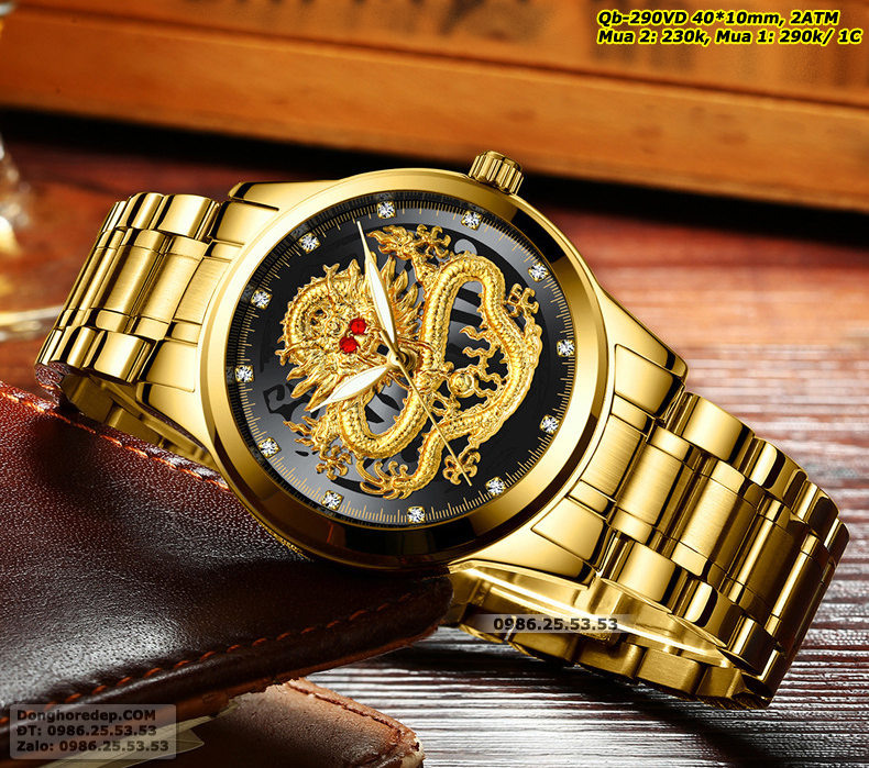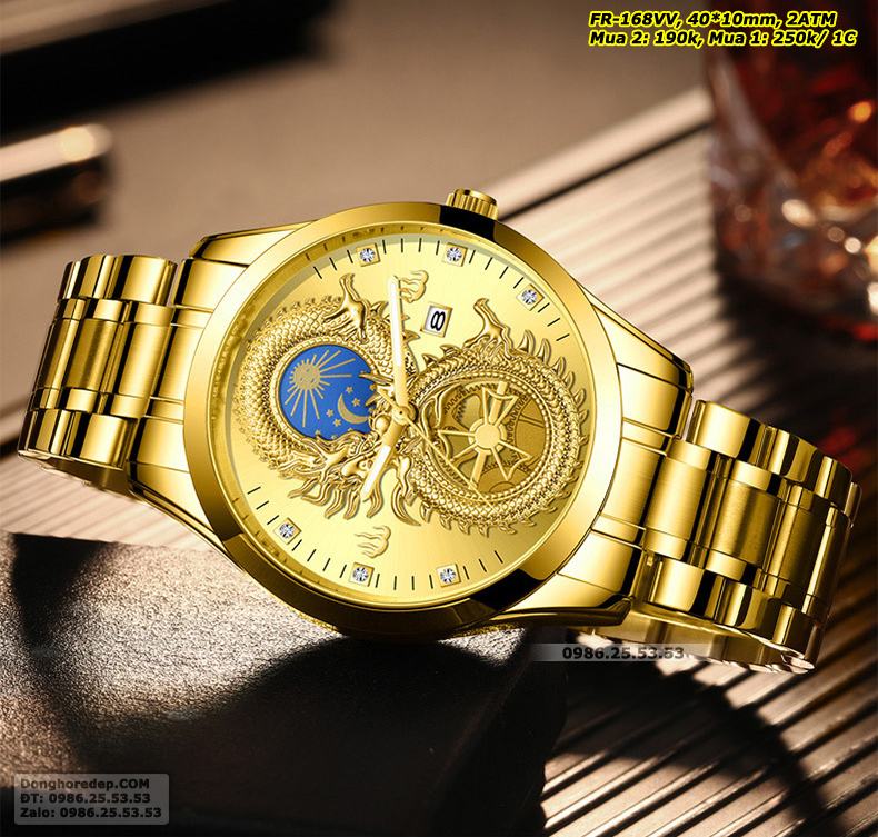 Đồng hồ đôi Rồng Phượng màu vàng được thiết kế tinh xảo, sang trọng với hình Rồng Phượng in nổi 3D. Rồng và Phượng là hai loài vật linh thiêng trong văn hóa Á Đông, tượng trưng cho sức mạnh, quyền lực và may mắn. Hình ảnh rồng phượng được khắc họa một cách sống động, sắc nét, mang đến vẻ đẹp cuốn hút và ấn tượng cho chiếc đồng hồ.